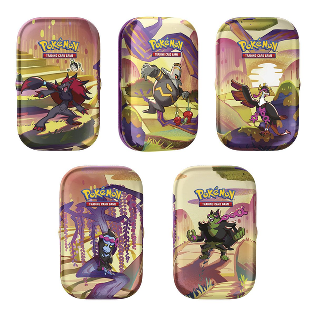 Prepare for nightfall and discover a malevolent presence as Pecharunt ex commands the Loyal Three—Okidogi ex, Munkidori ex, and Fezandipiti ex—to do its nefarious bidding. Meanwhile, Revavroom ex plugs into the grid to Terastallize into a Lightning type, and Kingdra ex makes a royal splash in the Pokémon TCG: Scarlet & Violet—Shrouded Fable expansion! Over 95 cards. Pecharunt makes its Pokémon TCG debut. The Loyal Three appear for the first time as Pokémon ex. More than 30 Pokémon and Trainer cards with special illustrations. Pokémon TCG Scarlet & Violet - Shrouded Fable Mini Tin includes two Scarlet & Violet - Shrouded Fable booster packs, one sticker sheet and one art card matching the tin, featuring Dusknoir, Zoroark, Okidogi, Munkidori or Fezandipiti.